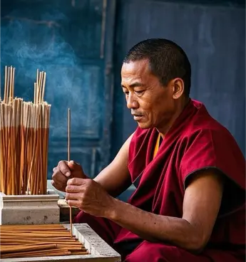 Cleanse Hands: Wash your hands thoroughly. ——Unbox Incense: Open the box and first remove the Tibetan incense.——Prepare Space: Sit comfortably in a quiet place. Light the incense and calm your mind.——Hold the Blessing Item: Place the sacred object in your palm and press both palms together.——Set Intentions: Close your eyes, press joined palms to your forehead, and silently offer blessings for yourself.——Wear the Item: You may now wear the item.